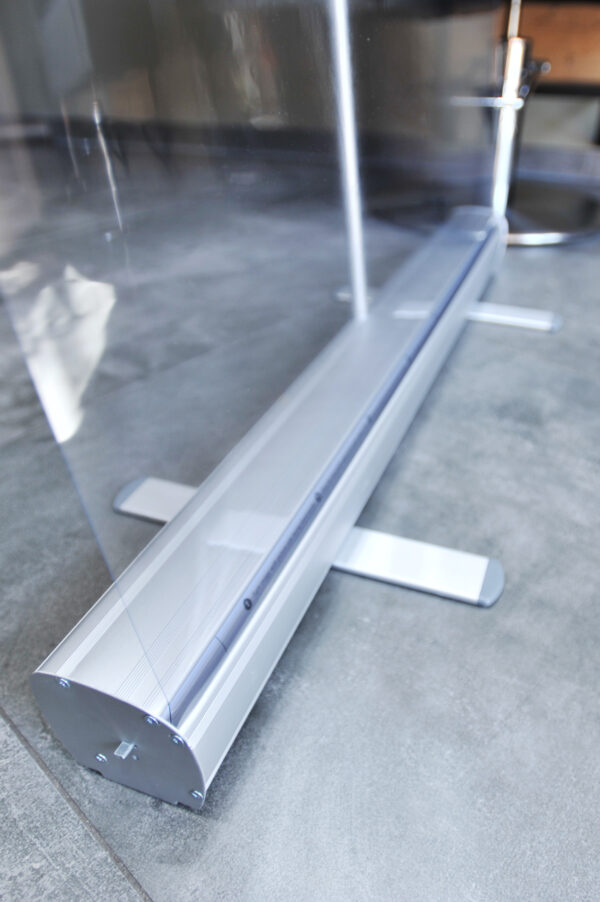 De rollbanners worden voorzien van een Glashelder PVC doek met een B1 Brandcertificering. Dit doek is volledig lucht- en vochtdicht. Daarnaast is het doek te reinigen met water en desinfectiemiddel. Hierdoor voldoen de wanden aan de eisen van het RIVM.